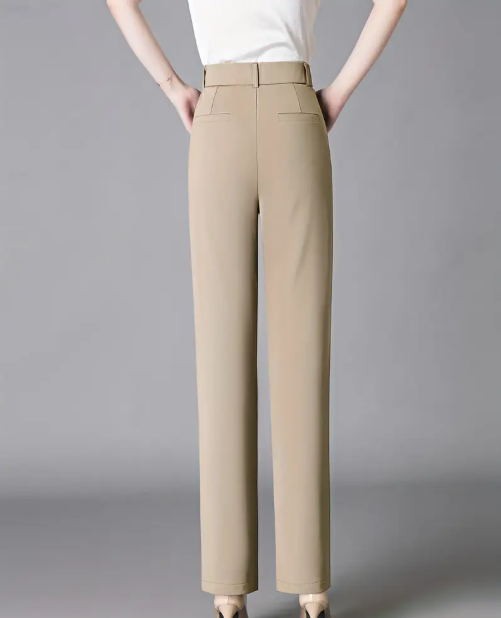 Stretchy Straight-Leg Trousers with Pockets, Office & Casual Wear, High Waist Pants, Comfortable & Easycare Material, Smooth Fabric